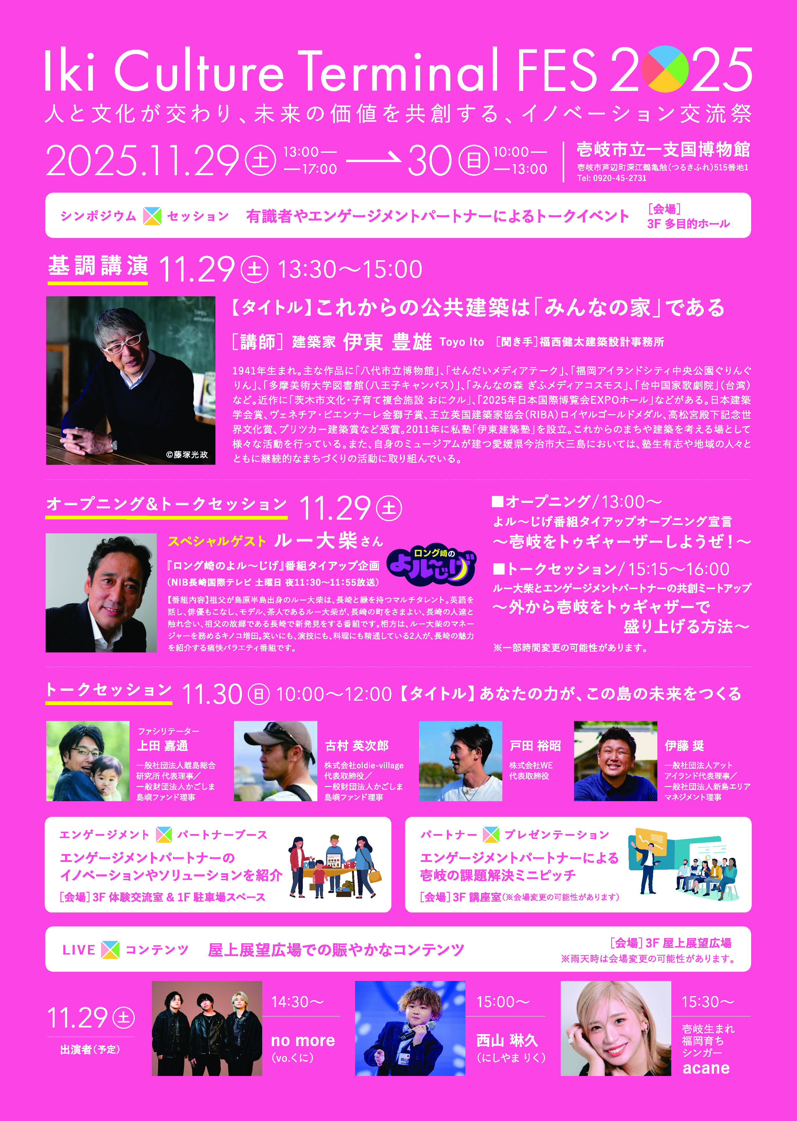 IKI Culture Terminal FES 2025~文化・食・SDGsで未来を共創する2日間のイノベーション交流祭~を11月29日(土)~30日(日)に開催いたします。